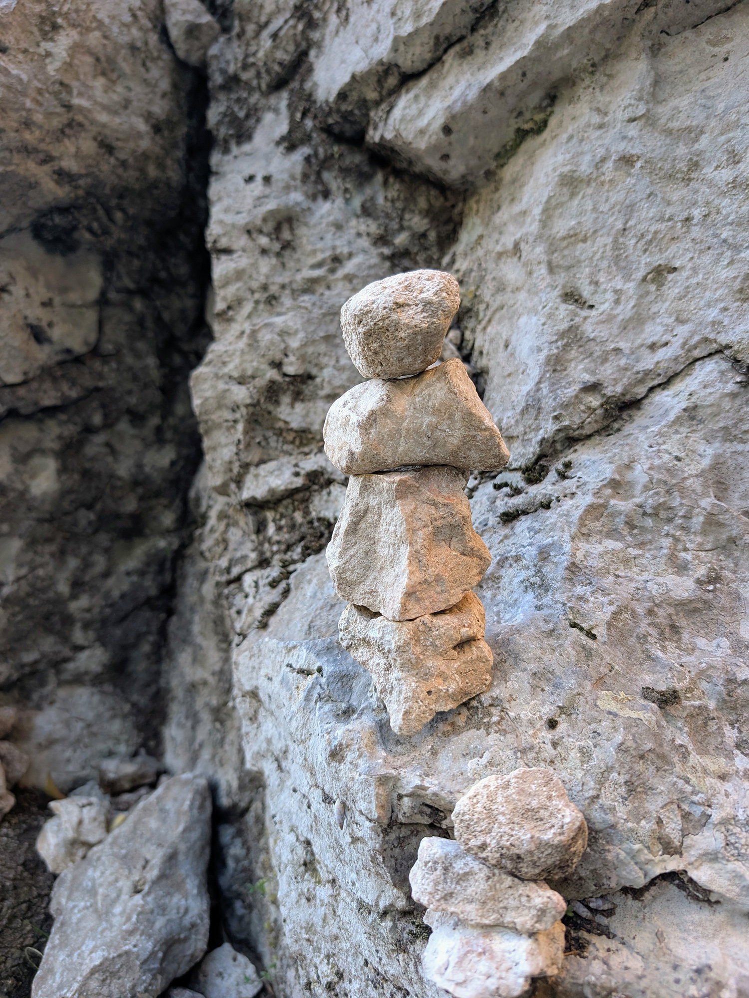 Mein Blick bleibt an einem Foto aus dem letzten Jahr hängen: Vier Steine, aufeinander gestapelt. Etwas wacklig, aber sie stehen. Auf unebenem Grund, ohne Befestigung, ohne Sicherung. Wacklig und standhaft zugleich.